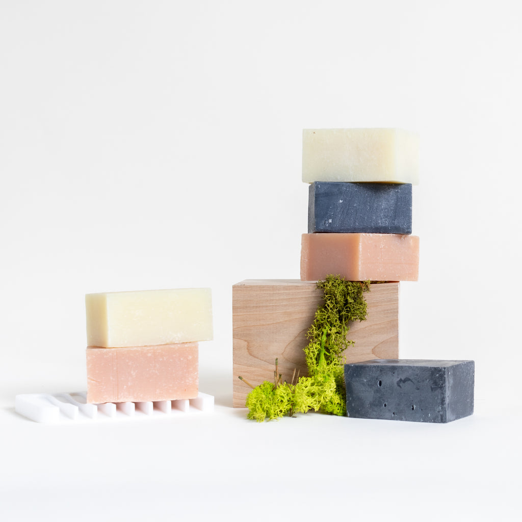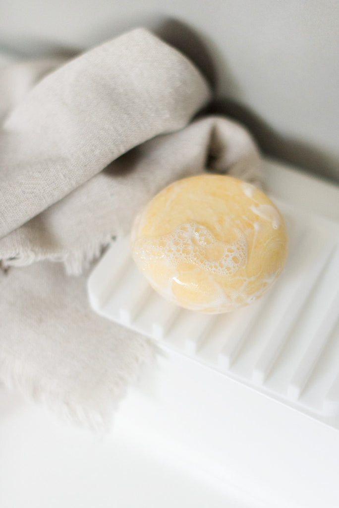 Our Self-Draining Silicone Soap Tray is perfect for any Bar Soap or Shampoo + Conditioner Bars!